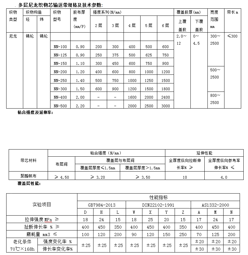 尼龍輸送帶是以錦綸纖維編織的尼龍帆布為骨架材料,覆以高性能橡膠而成的輸送帶,具有帶體薄、強(qiáng)力高、耐磨損、耐沖擊、成槽性好,層間粘合力大,屈撓性能優(yōu)異及使用壽命長等特點(diǎn),適用于中長距離,較高載量,高速條件下輸送物料,廣泛用于礦山、冶金、建筑、港口等。